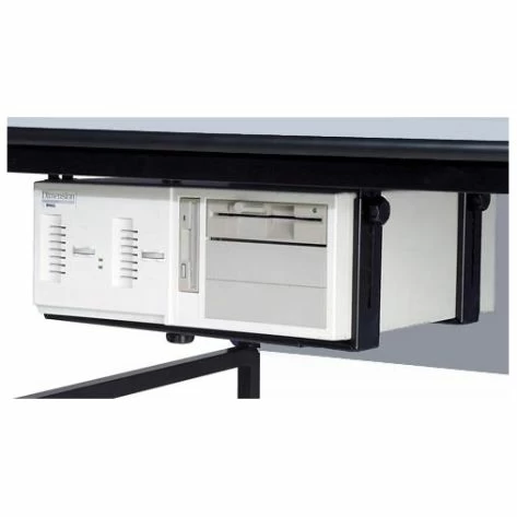 Yes this unit can be attached to any suitable flat surface. Appropriate fasteners should be selected for the material. It should be oriented so that the CPU, UPS or computer tower can not slide downward. Professional installation is required so that the correct fastener type is used.