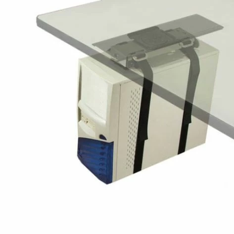 This CPU holder mounts underneath most work surfaces and attaches securely without damaging the surface of your computer. Some assembly required.