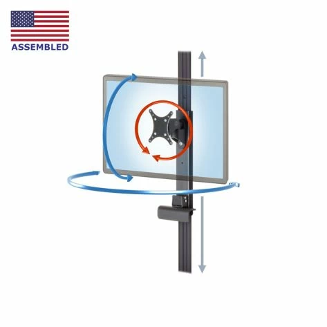 - The fully articulating monitor mount positions the back surface of the monitor at a 4.85 inches from the wall and gives the monitor additional positioning freedom. The monitor can still instantly rotate between landscape and portait. It can also tilt up and down and swivel right to left. For most screens, this range of motion is only limited by the wall.
