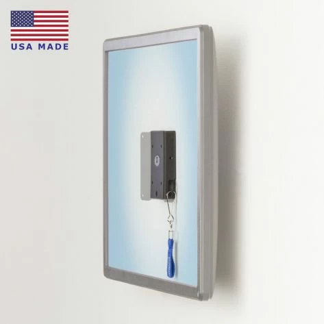 The Monolok wall mount securely affixes monitors weighing up to 30 lb. The VESA compatible vertical surface mounting system works with most LCD, LED monitors, touch screens and VESA compliant all-in-one computers from 10" to 32" as well as many lighter TV monitors up to 42" that have 100 x 200 VESA hole patterns on back. Rotation resistance is user adjustable to accommodate a wide weight range of monitors and ensures optimal control of movement between portrait or landscape modes. Powder-coated cold-rolled steel construction makes this wall bracket suitable for a variety of commercial, industrial, and consumer applications. Use the included screw lock to inhibit removal or an anti-theft fastener for added security.