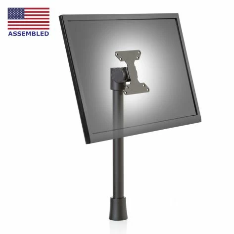 Ergomart’s Point of Sale VESA Through-Desk Pole Mount is a flexible device that can be used in PoS and digital displays, office and retail environments, kiosks, and more. The light-duty mount supports monitors, tablets and other VESA compatible devices up to 10 lb on a 15” pole. The mount provides a 100° range of tilt, allowing the user to place the attached device in a perfect viewing position. The mount has several integrated cable management options. A cable clip can either be attached on the pole to run cables along the outside or the cables can be routed through the pole all the way out the bottom under the mounting surface or out of a port located near the base of the pole. The included through-surface mount works with surfaces up to 1.8” in thickness.