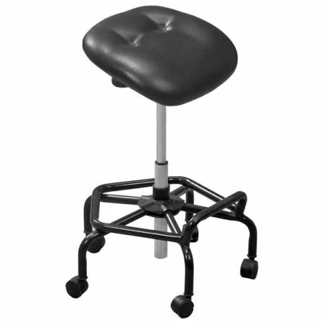 The seat itself is coated with sprayed-on polyurethane. The substance is extremely durable, having withstood extensive chemical and puncture testing, and offers flame resistance. The Spider Sit Stand is built to withstand heavy use in harsh industrial and medical environments and includes a five year warranty on the base and seat.